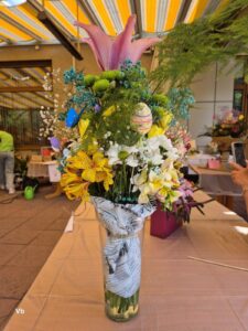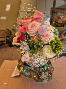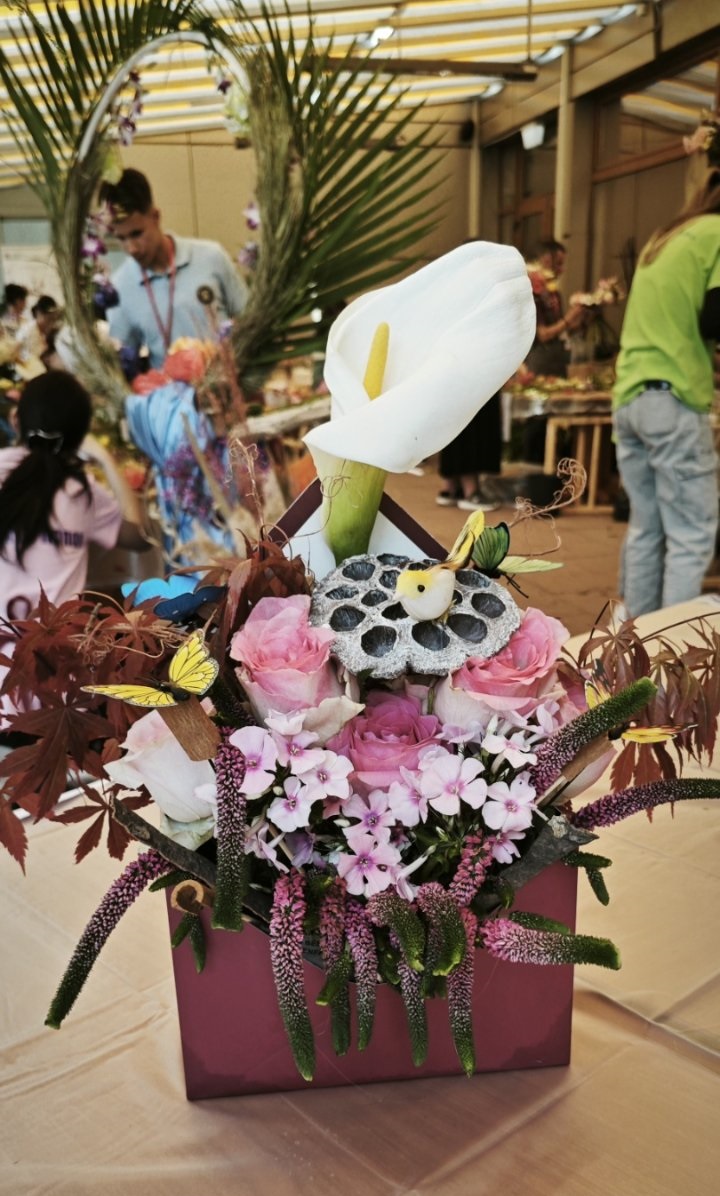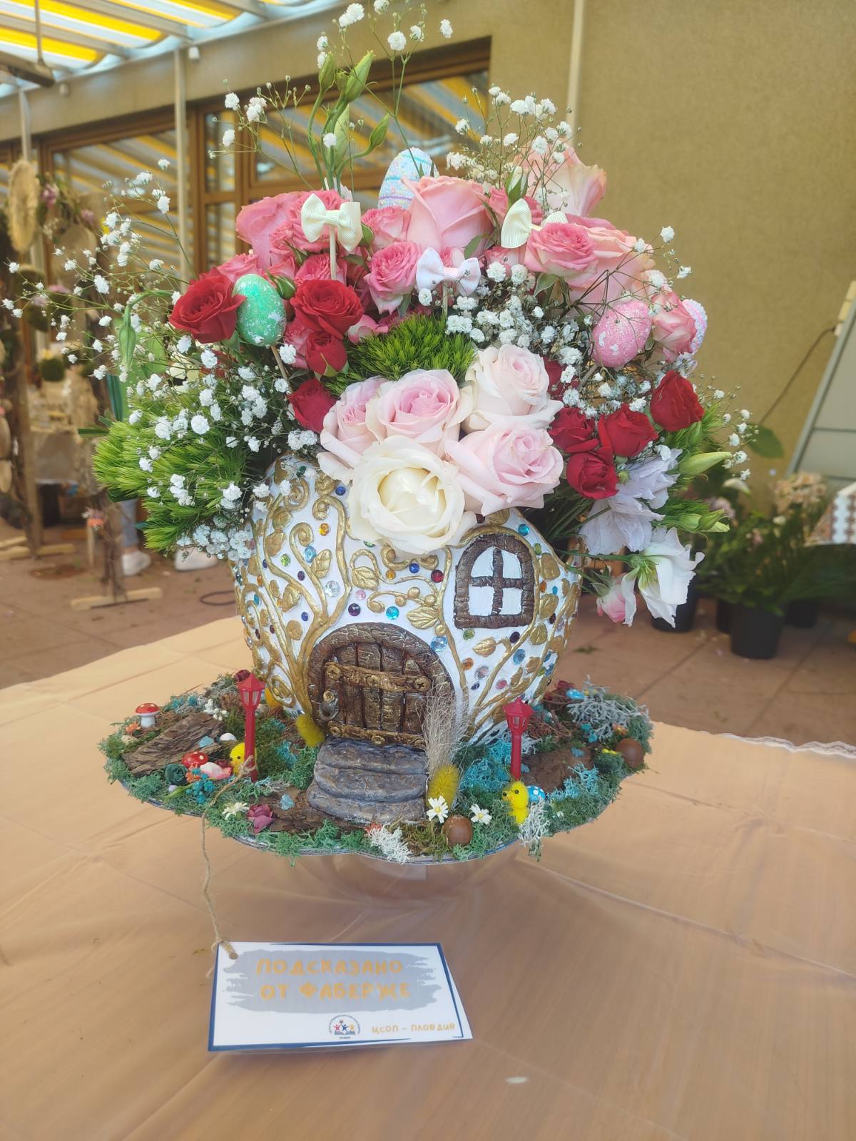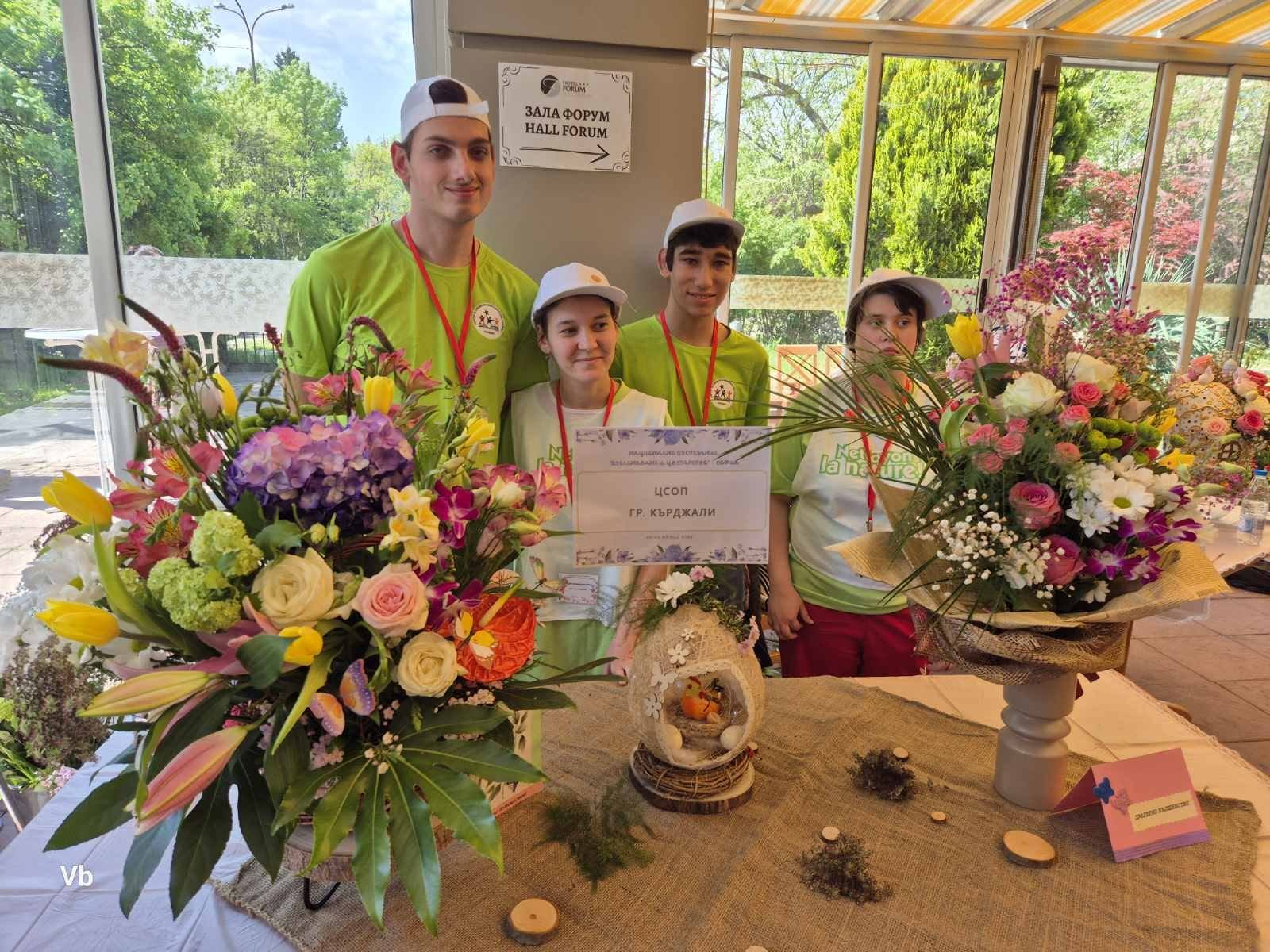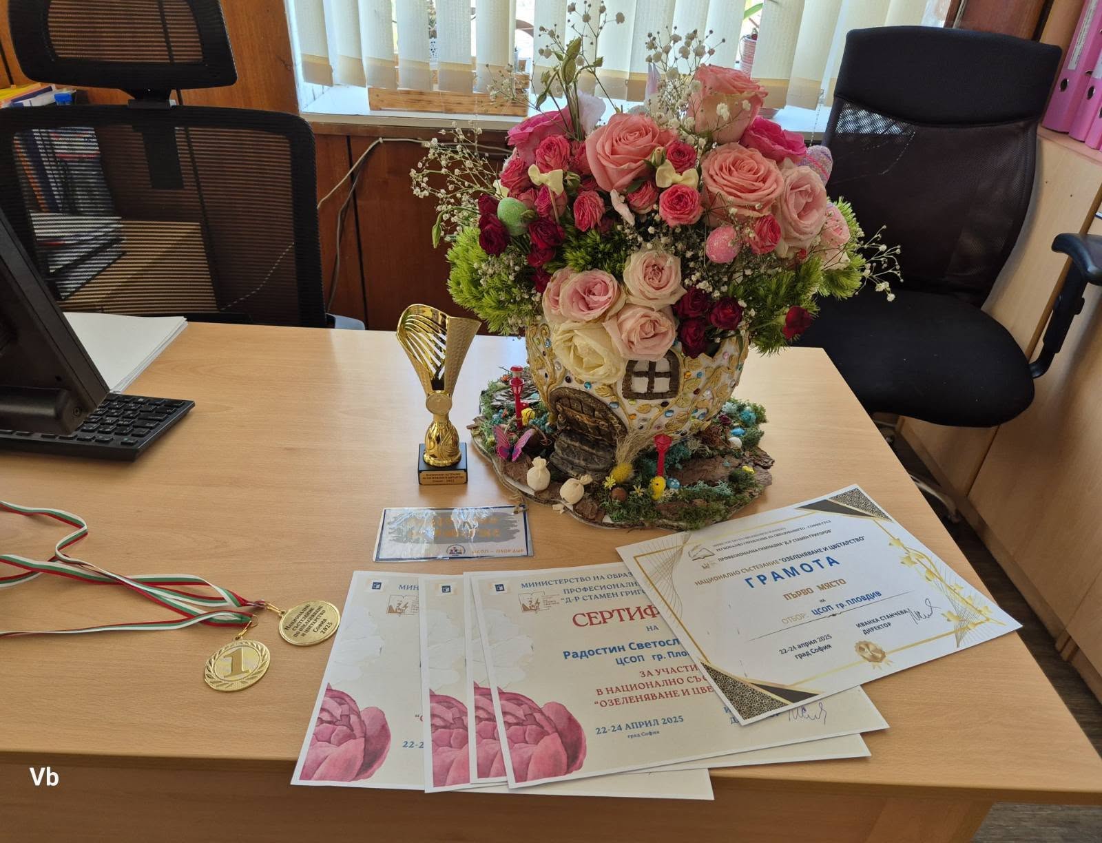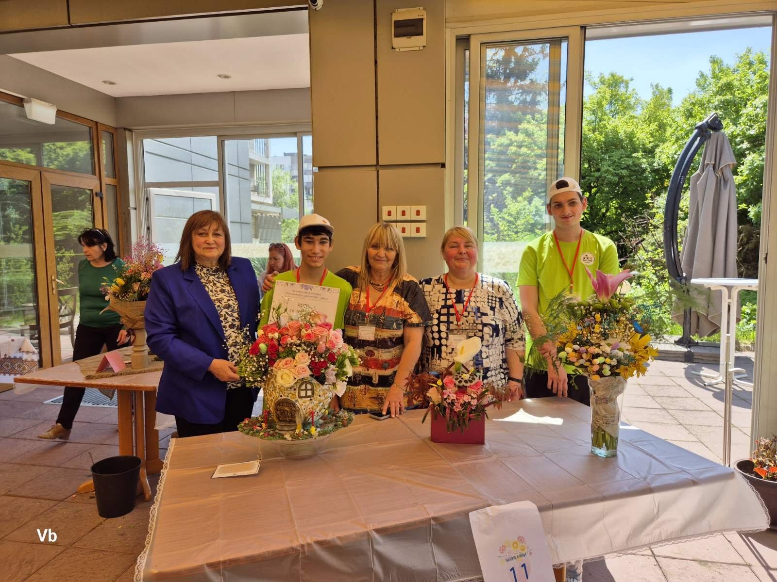 За участниците от трите центъра за СОП състезанието се проведе в две категории: „Букет микс“ и „Кошница/кутия с цветя“ . Освен в тези категории, нашият отбор се включи и с арт-инсталация „Подсказано от Фаберже“, с което покри част от задължителните изисквания за професионалните гимназии. Журито, съставено от преподаватели от Лесотехническия университет, Института по декоративни и лечебни растения, както и флористи оцени професионалните умения на отборите и заслужено присъди Първо място, златни медали и купа на нашия отбор за отлично професионално и артистично аранжиране на цветята.