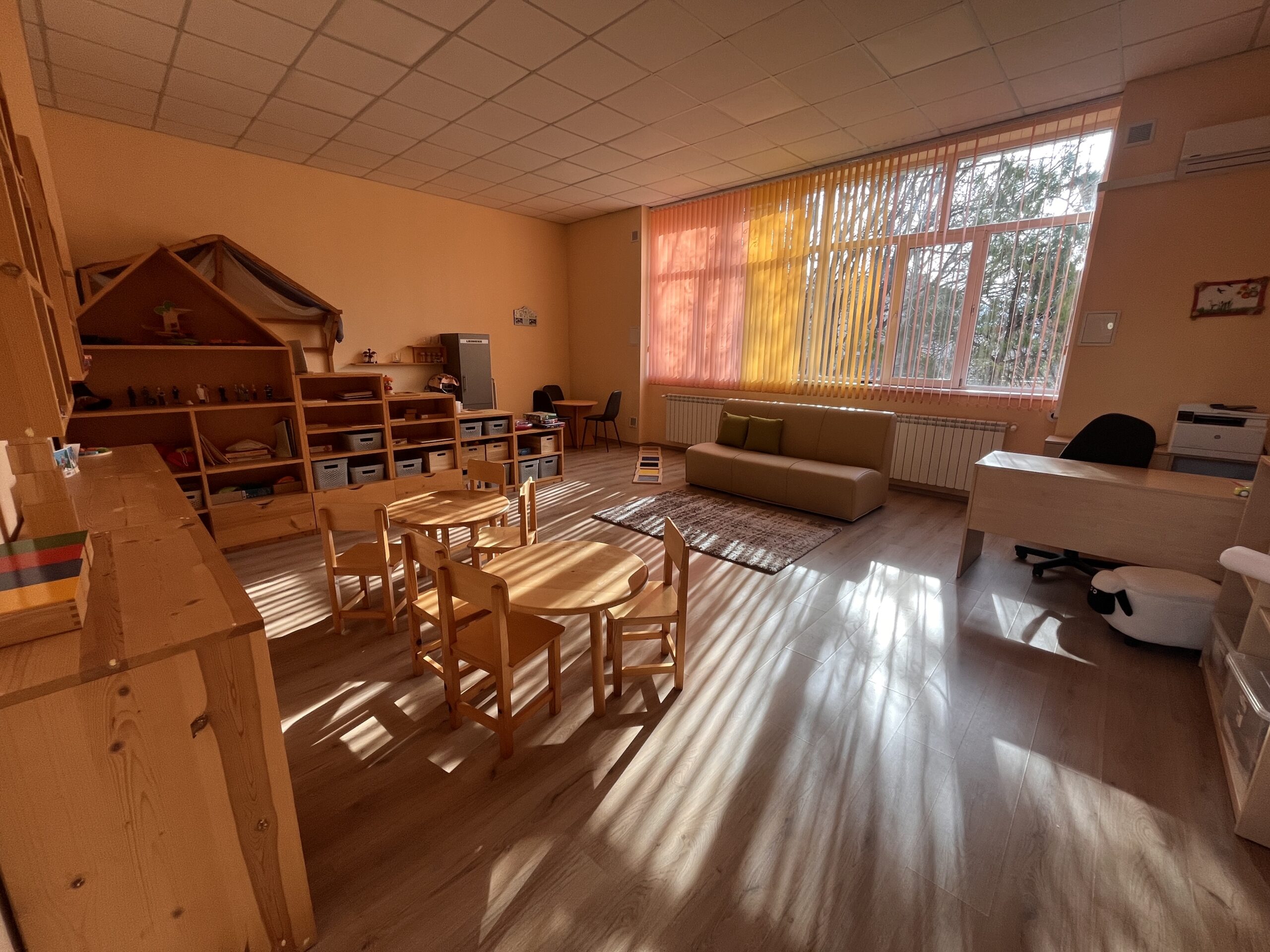 В този кабинет работи специалист по Монтесори обучение, който….