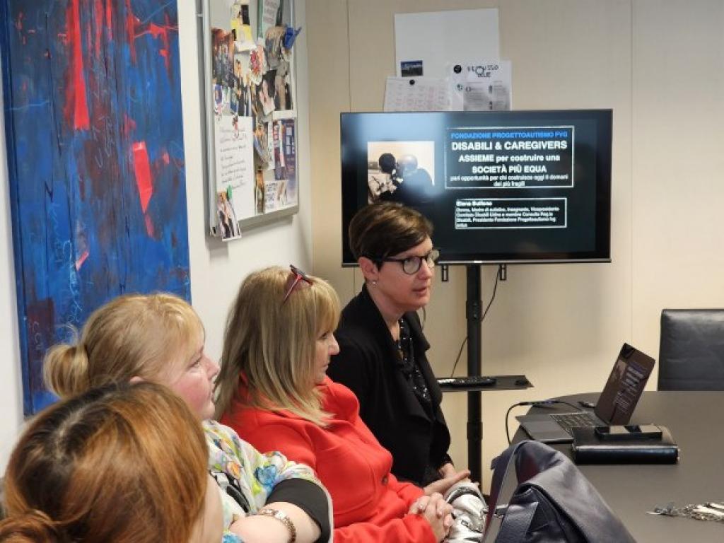 Първата част от визитата бе посветена на вдъхновяваща презентация, изнесена от ръководителя на организацията – отдаден професионалист и същевременно майка на дете със СОП. Тя представи историята на Progetto Autismo, която започва като гражданска инициатива, породена от нуждата на родители да създадат по-добро бъдеще за своите деца. Днес организацията се е превърнала в пример за устойчив модел на социално включване, обучение и подкрепа на хора в аутистичния спектър и техните семейства.