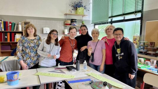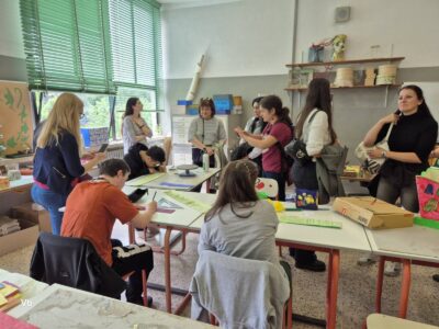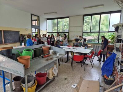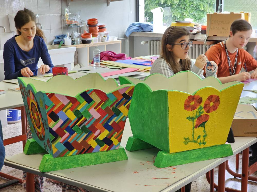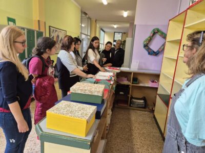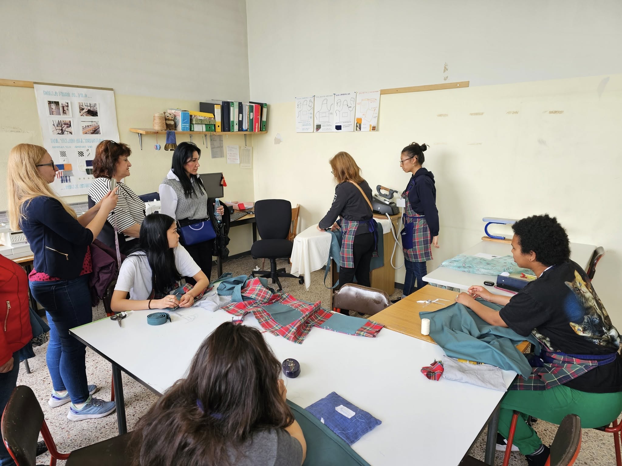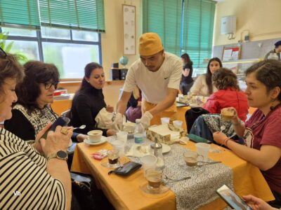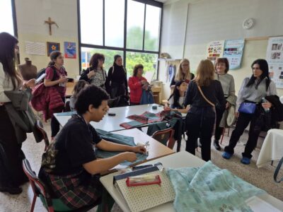 Различните лаборатории по градинарство и сладкарство ни „заредиха“ с много нови идеи, а тези по изкуство, шивачество и за придобиване на базови компютърни умения са любими и актуални. Днес в учебното кафене, ухаещо на сладки изкушения, ни посрещнаха група ентусиазирани учащи и учител по практика. Наблюдавахме приготвянето на типични италиански сладкиши, научихме тънкостите в рецептите и дегустирахме разнообразни напитки от кафе. Изработката на цветни кутии и папки от хартия, които после се излагат в учебния магазин, не е лесна работа, но учителите тук знаят как да помогнат индивидуално на всеки от групата.