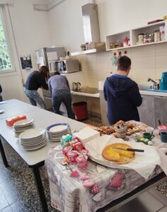 Любезните домакини от Дневния център на Асоциация Anffas Ticino Onlus в гр. Сома Ломбардо бяха изключително гостоприемни при посрещането на специалистите от ЦСОП – Пловдив. Показаха ни как потребителите на центъра (от 16 до 35г) овладяват теоретични и практични умения по готварство. От умения за рязане на зеленчуци, месо и др продукти до умения за омесване, изпичане и пържене. Разработени са визуални табла и рецепти за готвене съобразени с индивидуалните възможности на всеки.