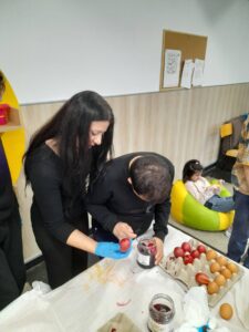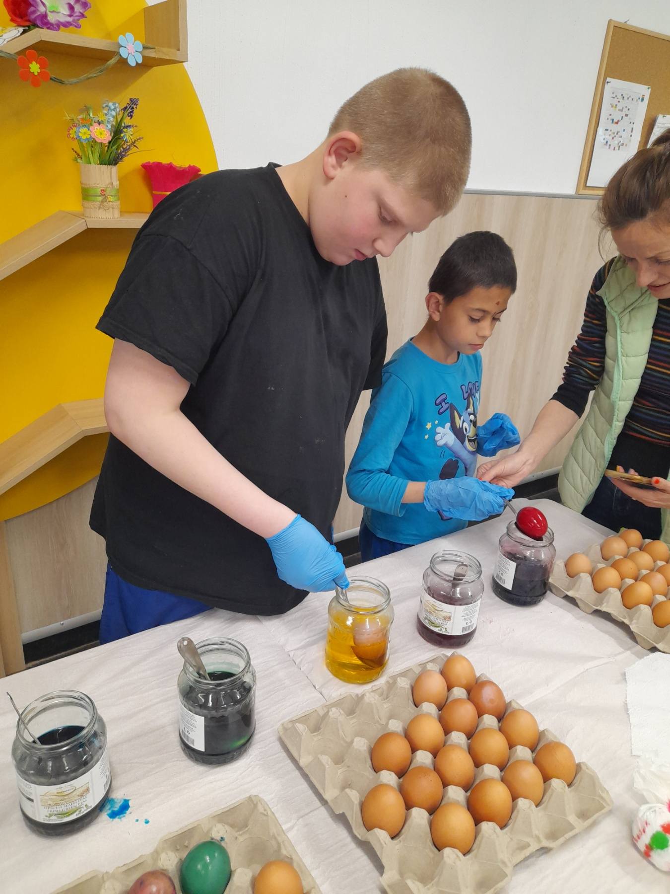 С децата от ЦСОП се потопихме в духа на Великден – боядисвахме яйца, оцветявахме красиви великденски рисунки и изработвахме украса. Всяко яйце се превърна в малко произведение на изкуството, сътворено с много въображение и любов. След това продължихме с изработка на велкиденска украса – зайчета, кошници и цветя оживяха в ярки багри под ръцете на нашите малки художници. Великден вече се усеща навсякъде около нас и денят се превърна в истински празник за сетивата!